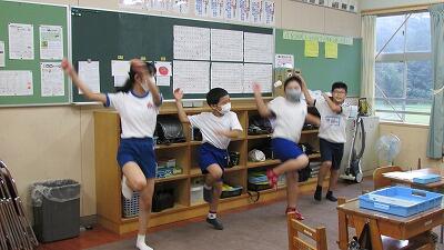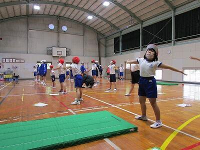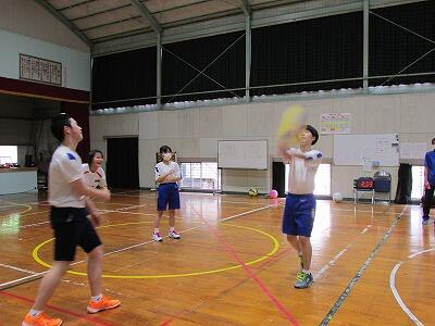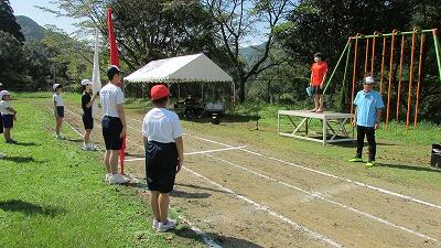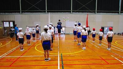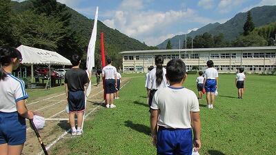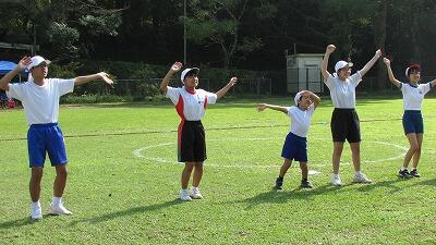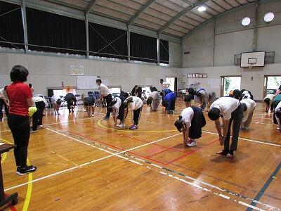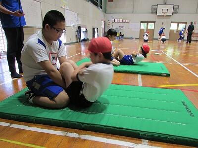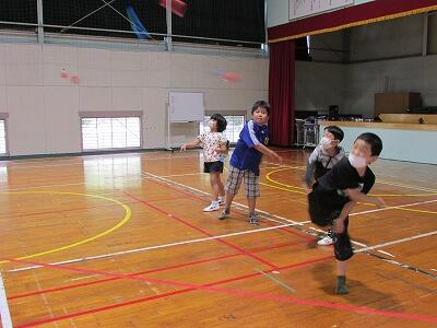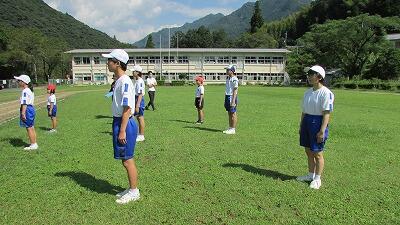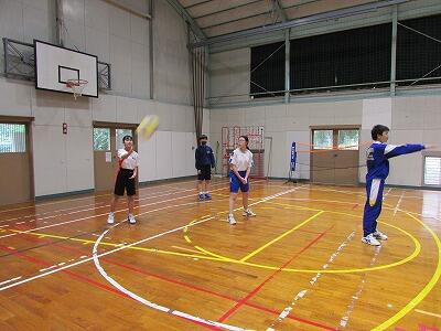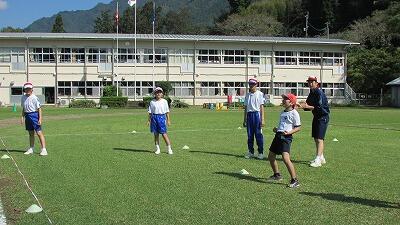 今日は体育の授業の様子を紹介します。本校の体育は、小学生も中学生も全学年一斉に実施しています。小規模校の特性を生かして、異学年交流を図りながら指導を行っています。