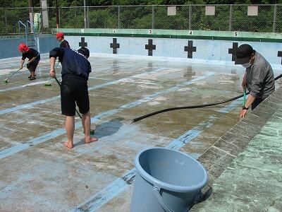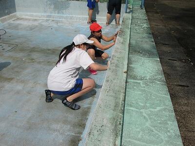 子どもたちの下校後は、職員でプール掃除を行いました。プールサイドの草取りなどを行いました。6月16日のプール開きに向けて、24日は児童生徒も一緒に清掃を行います。