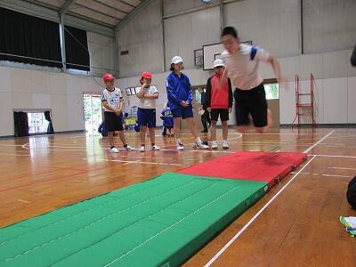 立ち幅跳びは、跳躍力を測定します。体全体を上手に使って、飛ぶ力やタイミングを考えながら少しでも距離を伸ばそうと頑張りました。