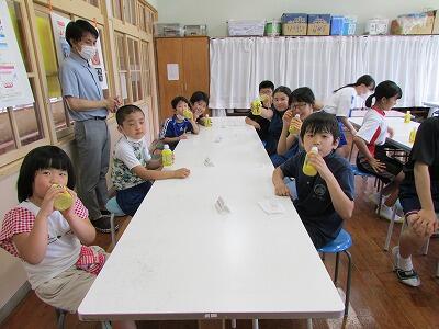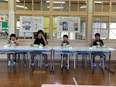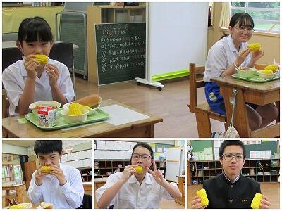 しかし、給食室の先生方の「銀鏡の子どもたちにも食べさせてあげたい」という心遣いにより、昨日、ついに本校の子どもたちも食べることができました。「甘い!」「おいしいです!」と思わず笑みがこぼれる子どもたちの姿に、ほっこり心温まる給食となりました。