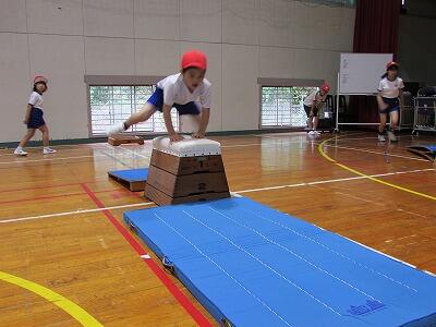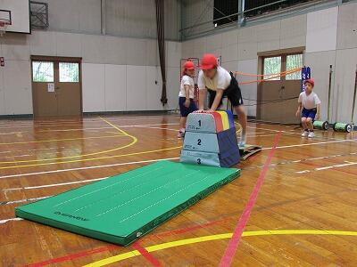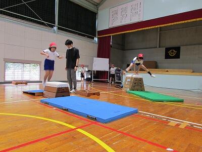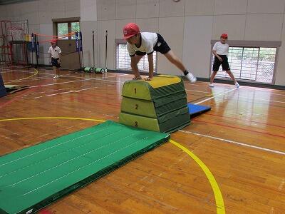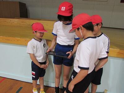 今日は開脚跳びの練習をしました。跳んでいる様子をタブレットで撮影し、フォーム等を確認しました。