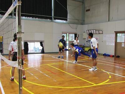 ラリーが続くように工夫してゲームをしています。サーブレシーブはまずボールをキャッチして、3回で相手コートに返す練習をしています。今後はレシーブの練習も入れながら、3段攻撃を最終目標としていきます。