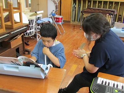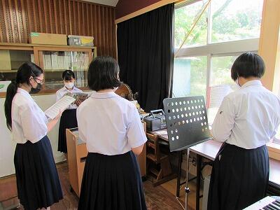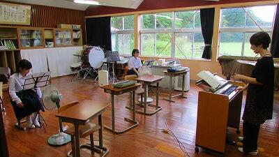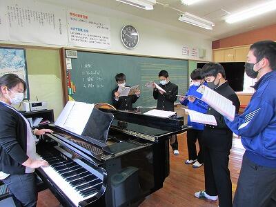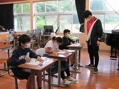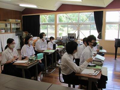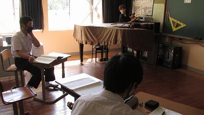 中学校1年生は音楽の授業で、合唱と篠笛をしました。