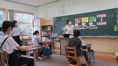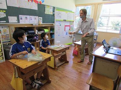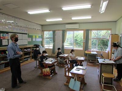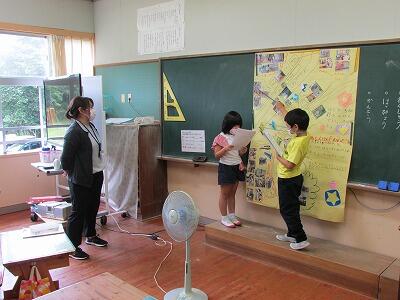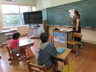小学校3年生は、ALTと一緒にアルファベットの勉強をしていました。