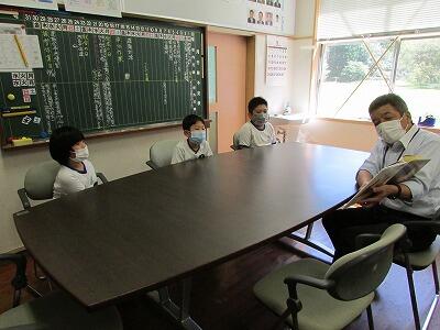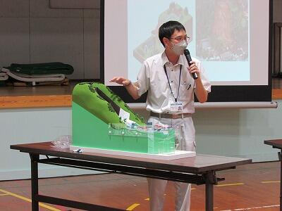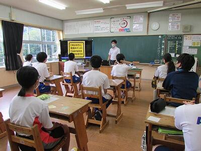 5校時は、西都土木事務所の方を講師に招き土砂災害防止教室を行いました。模型を使って土砂災害の様子を再現したり、実際に起こった土砂災害の映像を見たりしました。1時間に20㎜、連続100㎜以上の雨は危険だそうです。日ごろの備えと早めの避難が大切です。地区のハザードマップもいただいたので、家族全員でいざという時の行動を確認をしておきたいですね。
