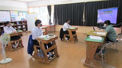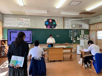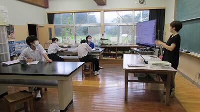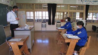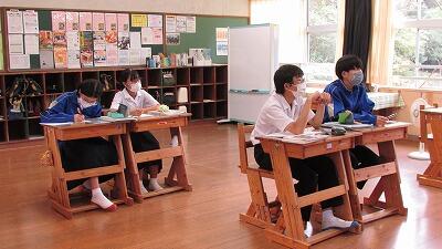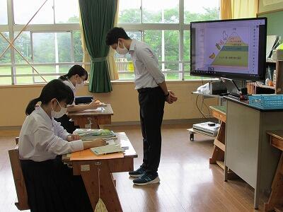 中学2年生の英語の様子です。教科書の本文内容を理解する授業でした。問題を解きながら、理解を深めました。