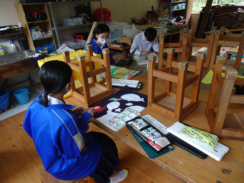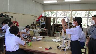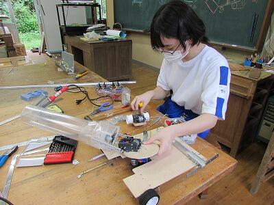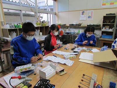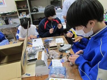 中学生の女子はロボコンに向けて、ロボット制作に取り組んでいました。