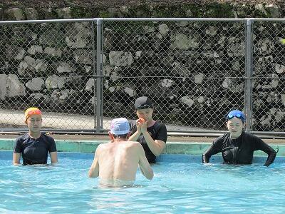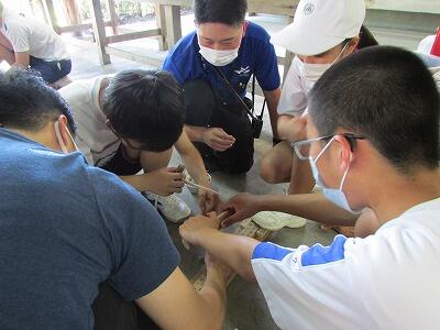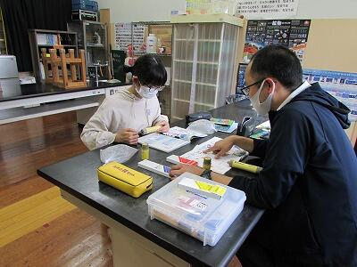 教頭先生から説明を受け、実際に水質調査を行いました。