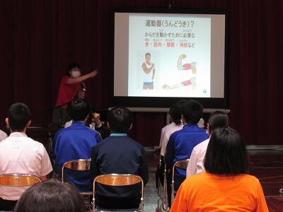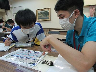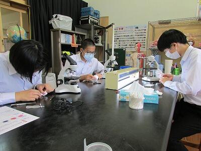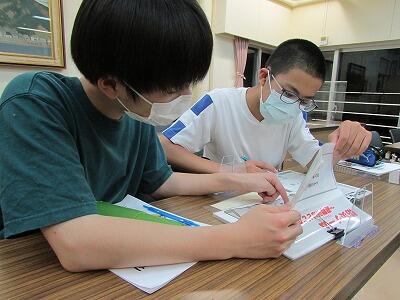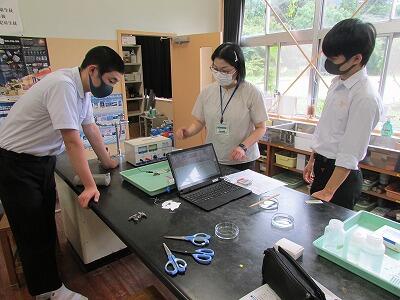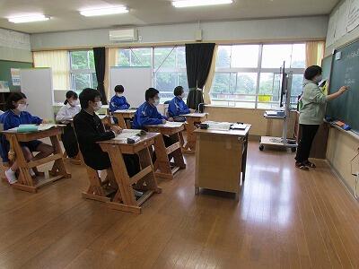 中学2年生の理科の授業では、循環系についての学習でした。これは、心房と心室の収縮によってどのように血液が流れていくのかの説明を受けているところです。心臓に直結する肺静脈は「静脈」と名がついているのにいちばん酸素を多く含む動脈血が流れていることを知り、少し驚いた様子でした。