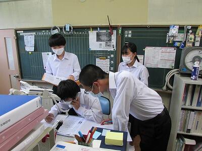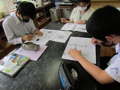 中学3年生の理科の様子です。 生物の進化について学びました。進化してきた証拠を化石等から確認しました。