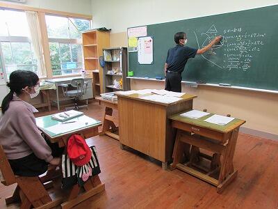 中学3年生の数学の様子です。文字式の利用について学習しました。苦手なところですが、みんな質問をしながら粘り強く頑張りました。