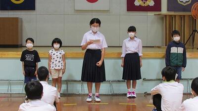 小学校1・2年生は生活科の授業で、運動会に向けて誓いの言葉の練習をしました。