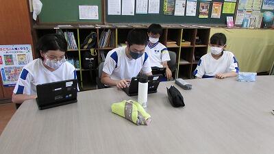 小1・2年の生活です。午後に予定されている稲刈りについて、動画を視聴しました。【inekari】のローマ字入力を頑張っていました。