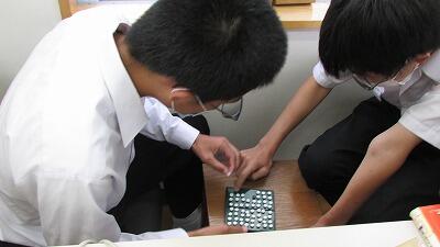 中学2年生は図書室で図書当番をする傍ら、オセロで遊んでいました。