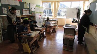 小学5,6年生の掃除の様子です。無言で一生懸命