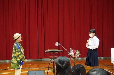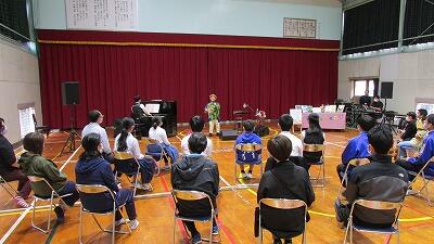そして今日は、「もののけ姫」の主題歌を歌っていることで知られている、西都出身の米良美一さんによる「読み聞かせコンサート」が本校体育館で行われました。ピアノの伴奏にのせて「スイミー」や「ほしじいたけとほしばあたけ」の物語を朗読してくださいました。また、童謡4曲やもののけ姫の主題歌を歌ってくださり、生の音楽ならではの迫力や感動を味わうことができました。児童生徒たちもお礼にもののけ姫の歌を歌い、素敵な時間となりました。