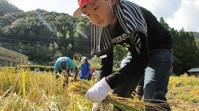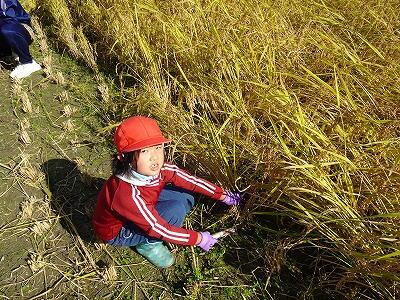 最初は、使い慣れない鎌に戸惑っていた子どもたちでしたが、だんだんと慣れてきて最後には手際よく稲刈りを行うことができるようになってきていました。