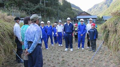 5・6時間目に、農業体験学習(稲刈り)をしました。