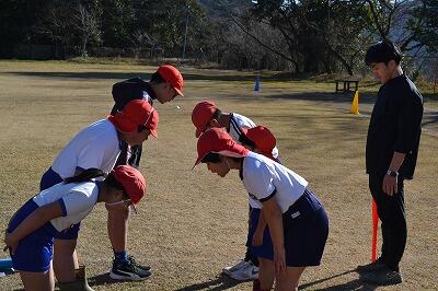 中学校の体育では、来週からの持久走に向けて、体つくり運動をしました。