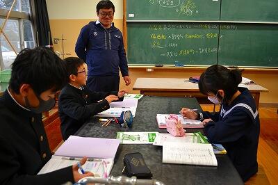 中学1,2年生の学活です。送別遠足の企画を話し合っているところです。楽しい遠足になるといいですね。