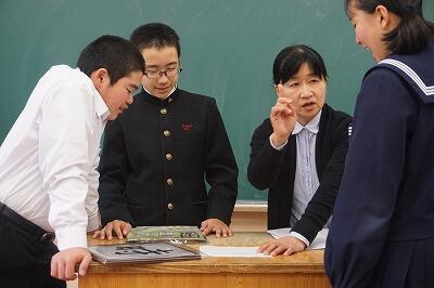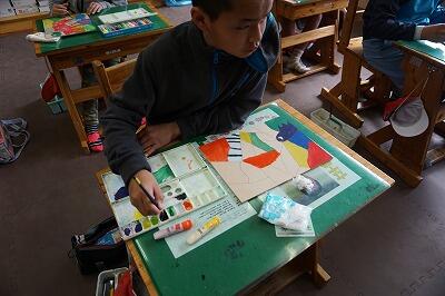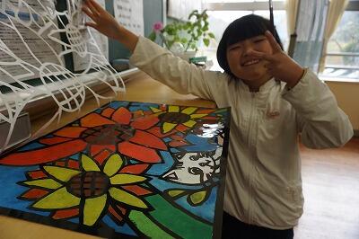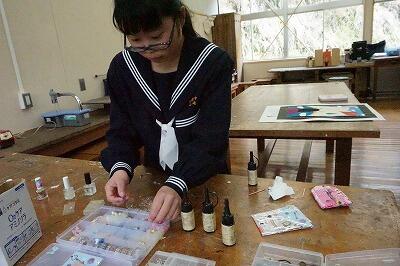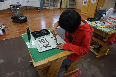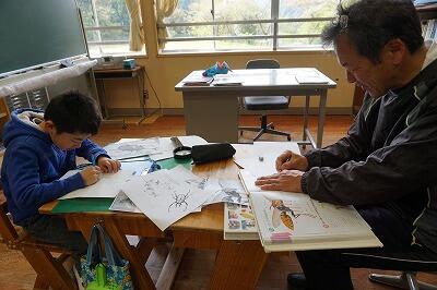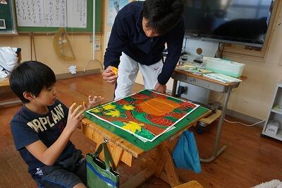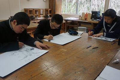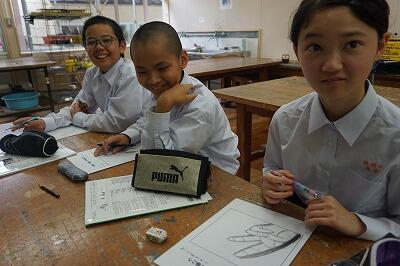 この下の写真、3年生は中学校の教頭先生との図工の授業