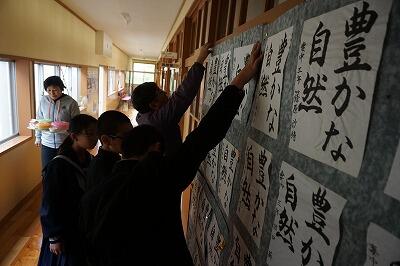 現在、学校で西都市の教育書道展の巡回展が行われています。