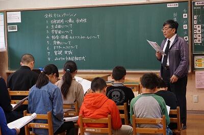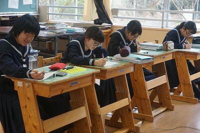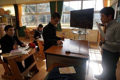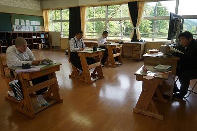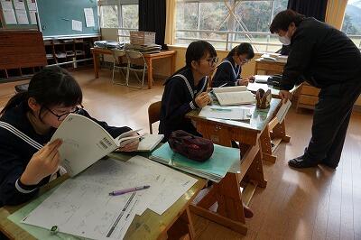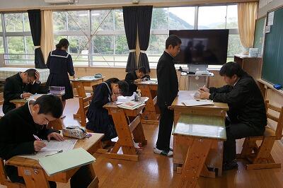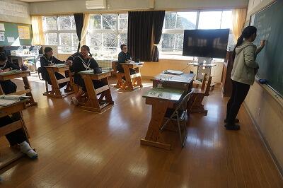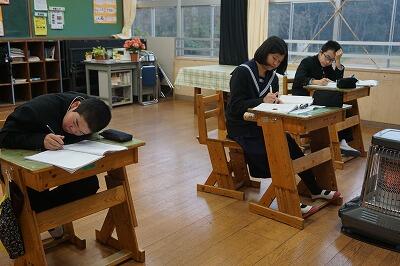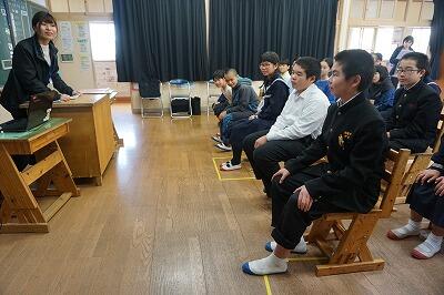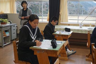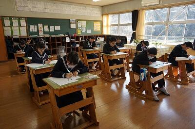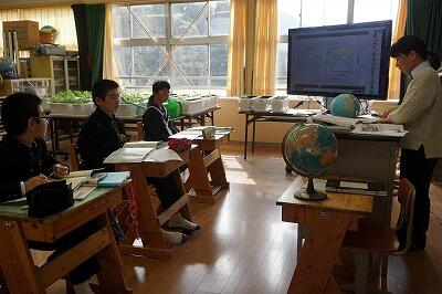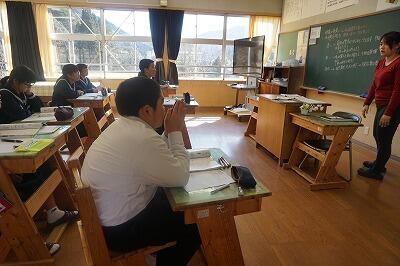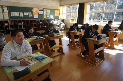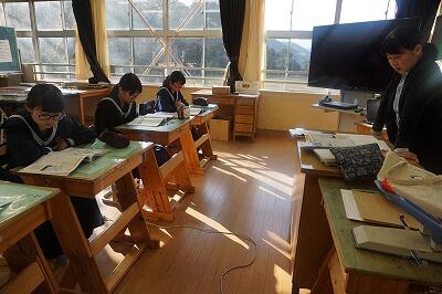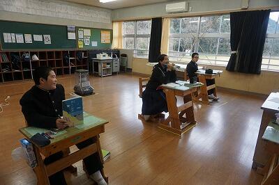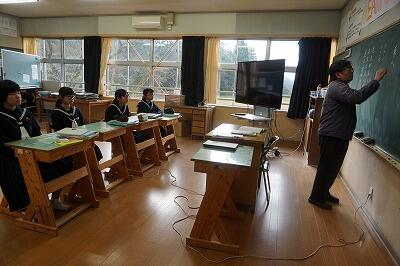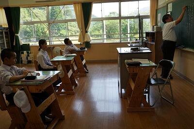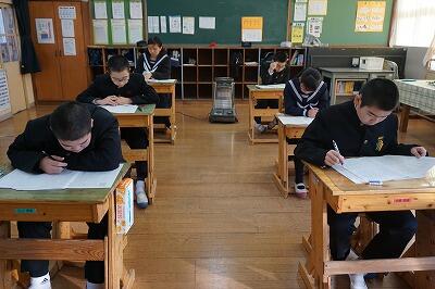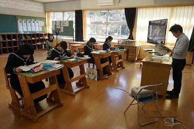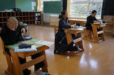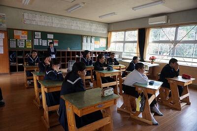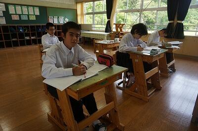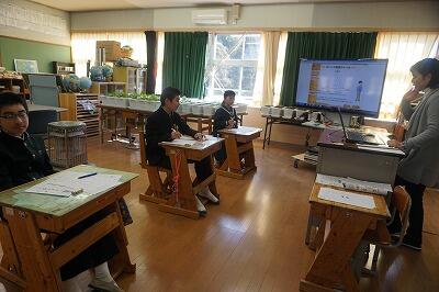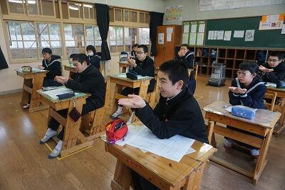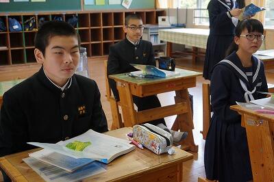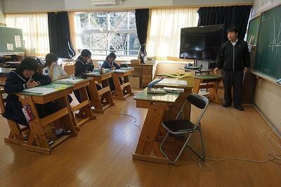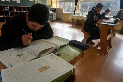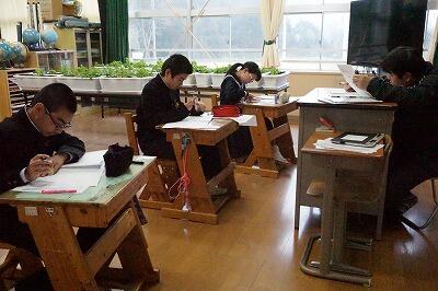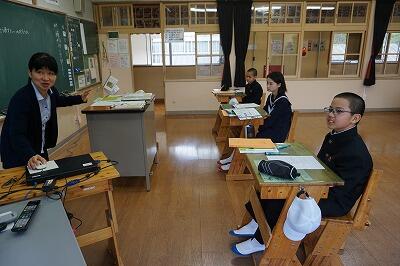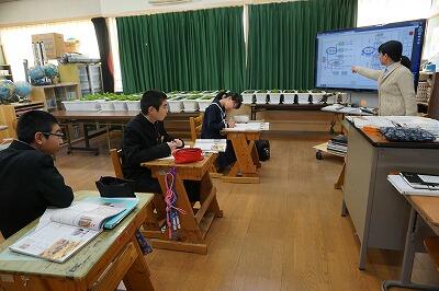 中学校もそれぞれ担任の先生が授業を行いました。1年生は社会、2年生は英語、3年生は数学です。みんなしっかりと受けていますね。