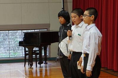 朝の集会では、子ども達がこれからがんばりたいことを発表してくれました。