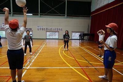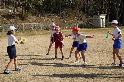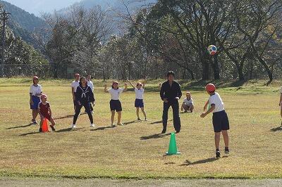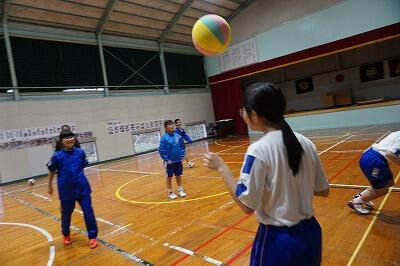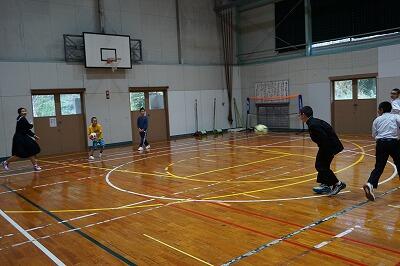今日の昼休みは、中学生・小学生一緒にドッチボールをしました。先生も一緒に加わり、大盛り上がりでした。