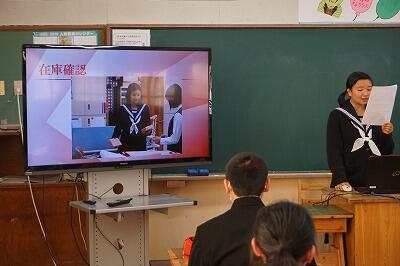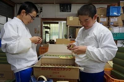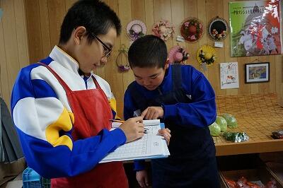 「山の駅」では、商品の在庫確認や値札貼りを、仲良くしていました。