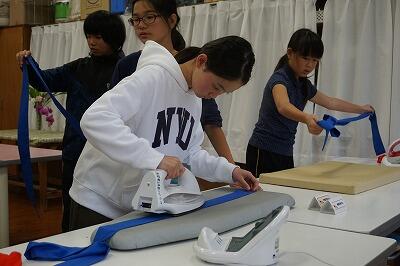 小学5.6年生は家庭科で、アイロンかけをしました。とても上手にできるようになりました。