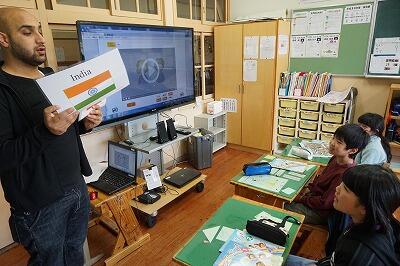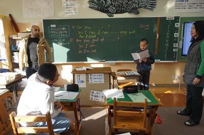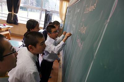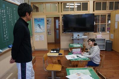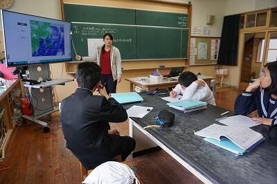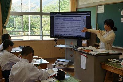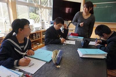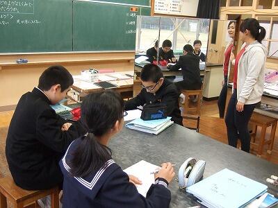 中学校3年生は、ALTの先生といっしょに英語の勉強です。