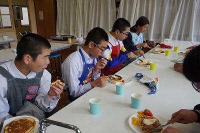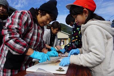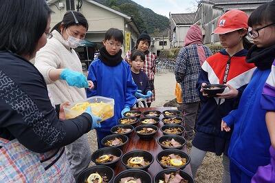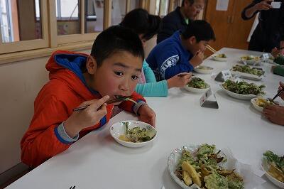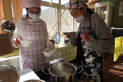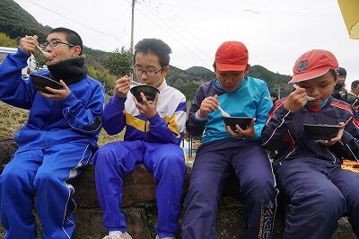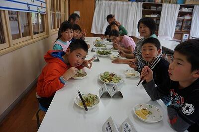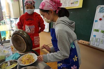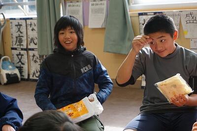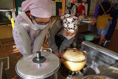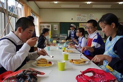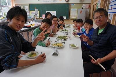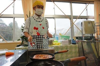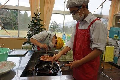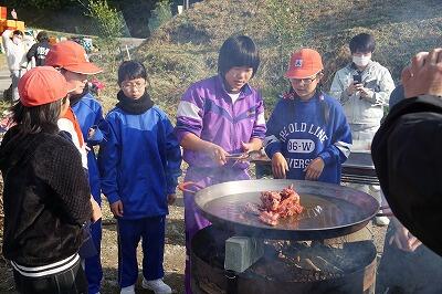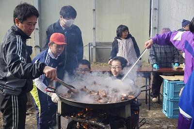 その後、全校でかぐらの里に移動をして、パエリアづくりに挑戦しました。