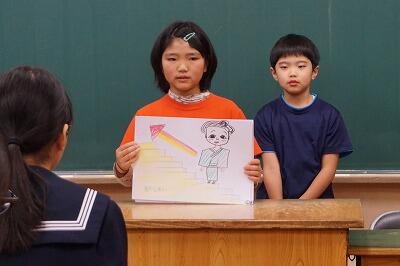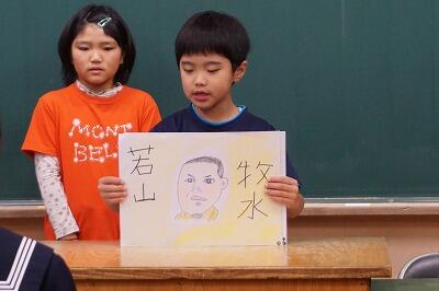 宮崎県の偉人である鳥原つるさんと若山牧水について、調べたことを紙芝居にして分かりやすく説明してくれました。