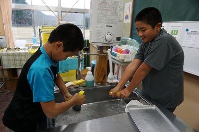 家庭科の授業では、5.6年生がランチルームの整理整頓・掃除をしました。コンロの油汚れまでピカピカにしてくれました。