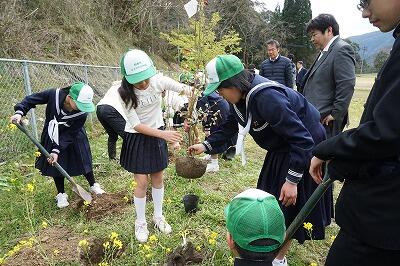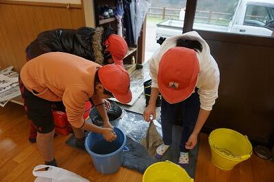 中学生が説明を聞いている間に小学生は、さつまいもの土作りを行いました。