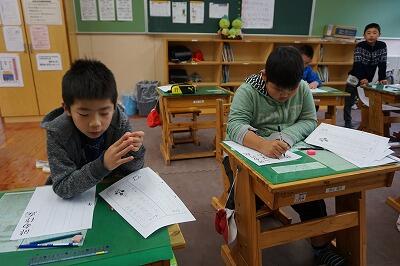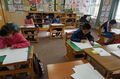 5年生は「だいじょうぶ だいじょうぶ」のテスト、6年生は「サボテンの花」のテストを受けていました。漢字も言葉もスラスラ?書けていました。