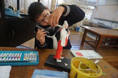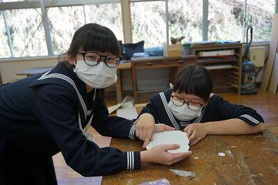 うーん。みんな真剣な表情で取り組んでいますね。美術科や家庭科では、彫塑やアイロンかけなどにも挑戦していま