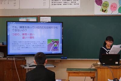午後から、中学生は人権問題に関するビデオを見て学習しました。