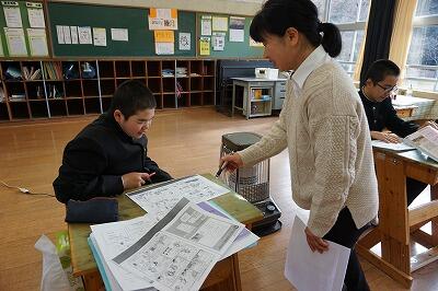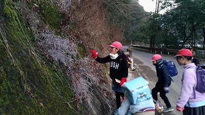 午後からは、地域探訪です。登下校の危険な場所とイノシシやスズメバチのような危険生物について確認しました。