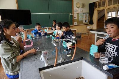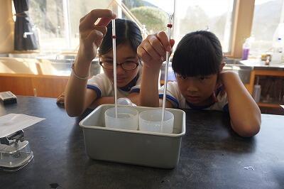 5年生はメダカの卵を観察しました。メダカの卵を双眼顕微鏡で見た子どもたち「すごい!」と感動していました。