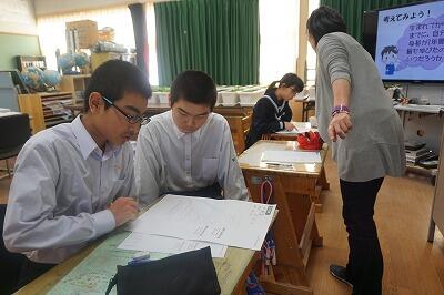 おいしい給食を食べて午後の授業。中学生は、放課後のプラスワンの時間に、専門委員会の話し合い活動も行いました。