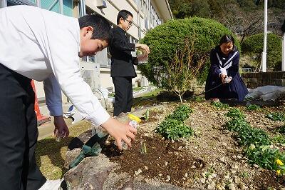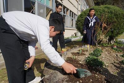 小学校3年生は,理科の観察で大きくなったマリーゴールドの苗の植え替えをしました。