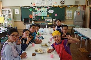 今日は幼児教室があって,中学校3年生が子どもたちのお世話をして楽しく遊んだりおいしいお菓子を作って一緒に食べたりと楽しく過ごしていました。