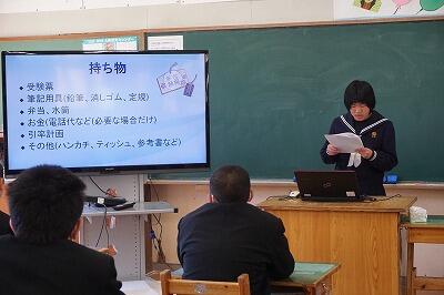 また、連休前の事前指導では、学習面と保健体育面、生活面についてそれぞれの先生方から話をしていただきました。