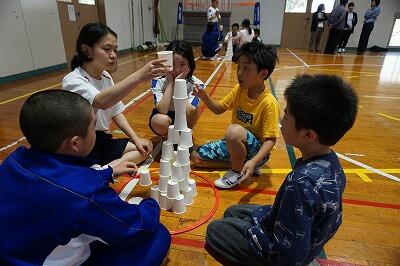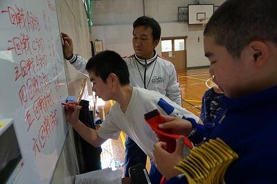 自己紹介や、陣取りをして体験留学生と仲良くなりました。