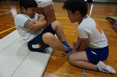 今日は全校児童生徒でAED講習会がありました。西都市消防署の方が4名見えられて4班に分かれてそれぞれ実践しました。みんな真剣に取り組んでいました。