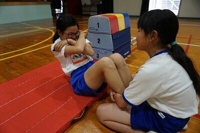 小学生は運動能力テストで長座体前屈や握力測定なども頑張っていました。
