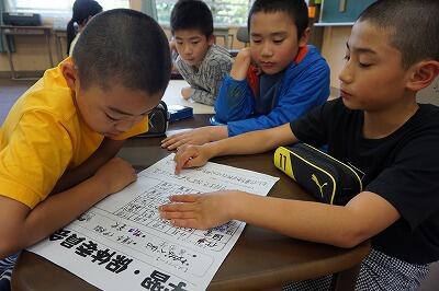 3年生は国語辞典の引き方を学んでいました。「ボタン」は「ほ」→「た」→「ん」。「た」は「せ」より前だっけ後ろだっけ?五十音も順番を改めて考えるのは難しいですね~。