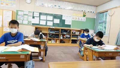本日は湿度が80 %を超え、大変蒸し暑い天気となりましたが、子どもたちは真剣に学習に取り組んだり、友達と一緒に読書をしたり、穏やかに過ごしていました。